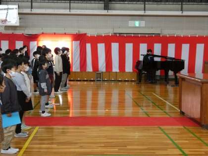 修了式 4 公開日 2023/03/24 更新日 2023/03/24 お知らせ 全校児童で校歌を元気よく合唱しました。修了式が終わった後で、生徒指導担当の先生から春休みの生活の仕方についてお話がありました。