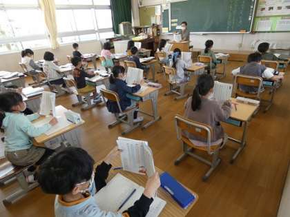 大きな声で教科書の音読をしていました。座学も頑張っています。