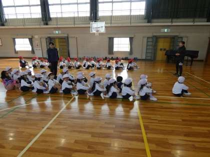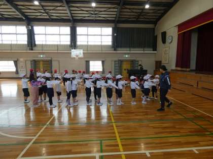 体育館で整列したり、だらっとした後でピンと緊張したりするメリハリをつける練習をしていました。