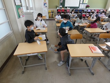 授業では、話し合いの場面がよくあります。2人で行う短い話し合いも慣れたものです。