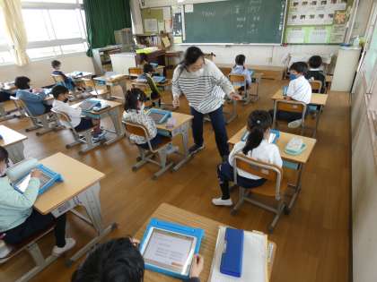 2年生 デジタル教科書の準備 公開日 2023/04/18 更新日 2023/04/18 お知らせ ipadの使用にもすっかり慣れた様子の2年生です。今日は、ipadにデジタル教科書をインストールしていました。