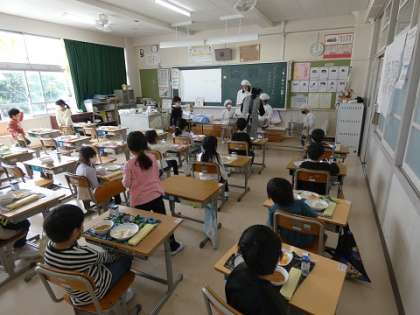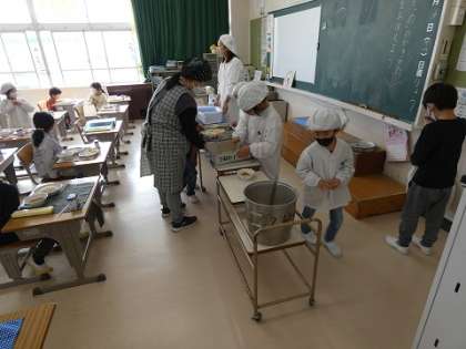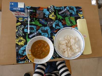 本日の給食のメニューは、不動の人気ナンバーワンメニューのカレーライスでした。1年生は、おいしく食べれたでしょうか。
