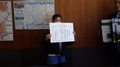 今日の集会では、まず、本校の募金活動に対して日本赤十字から表彰されたので伝達されました。そして、校長からは、あいさつについての話があり、養護教諭からは、熱中症予防についてのお話、校務主任からは、けがの予防についての話がありました。