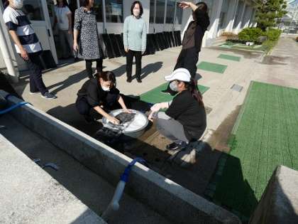 会議の後で、職員全員でエアコンのフィルターの掃除をしました。子どもたちが、熱中症にならないように協力して作業しました。