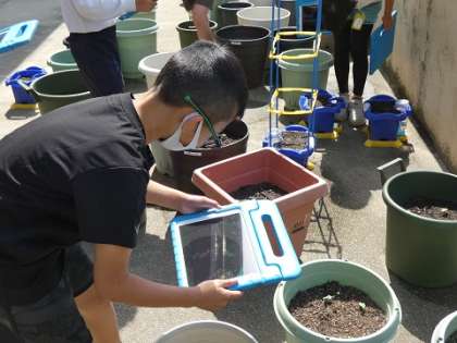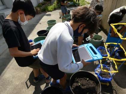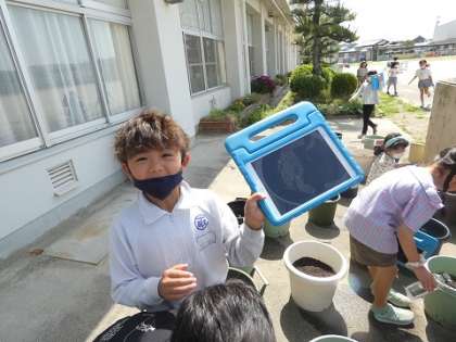 先日、種をまいたオクラやホウセンカなどが発芽したので、観察して、ipadで撮影しました。