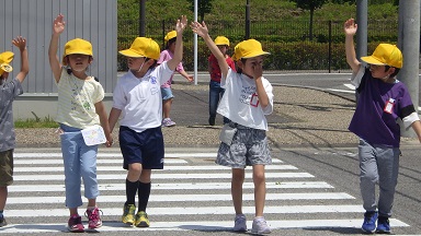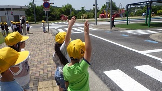 豊田市交通安全学習センターで、安全な横断歩道や踏切、歩道の歩き方を勉強しました。