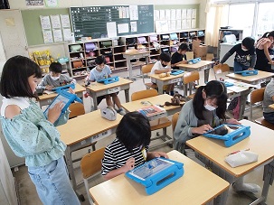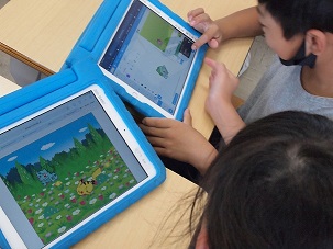 3年生 プログラミング学習 公開日 2023/05/23 更新日 2023/05/23 お知らせ スクラッチ(ipadのアプリ)を使って、ポケモンのキャラクターを動かすプログラムを考えました。キャラクターの色を変えたり、速さを変えたりしながら、様々な動きをするプログラムを考えることができました。次は、簡単なゲームを作る予定です。