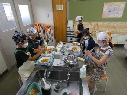 キャンプに向けて、飯盒でご飯を炊いて、カレーライスを作り、食べました。