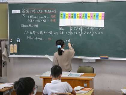 10億より大きい数の勉強をしました。岡山県の予算を例に学習しました。