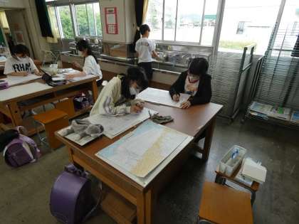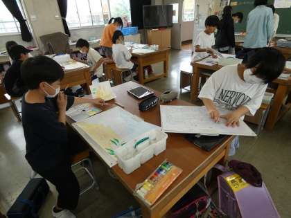 6年生は、畝部小学校の校舎の絵を描いています。構図をしっかりと考えて思い出の詰まった校舎を描いています。卒業しても、小学校時代を思い出させてくれるような作品を描いて下さい。