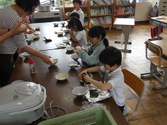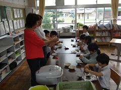 5、6組 お米を炊いておにぎりをにぎりました。