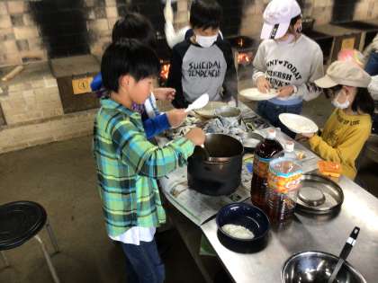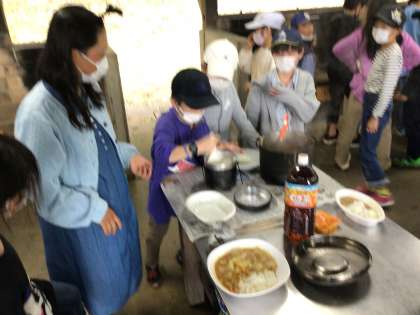 早い班は、カレーとご飯ができあがりました。