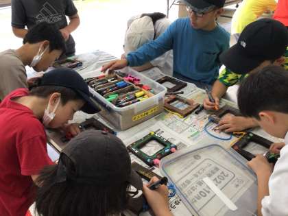 思い出の写真を飾れるように、ポスカで丁寧に考えたデザインを描きました。世界で1つだけのすてきな絵を描きました。