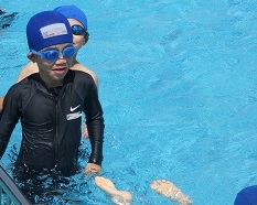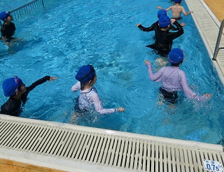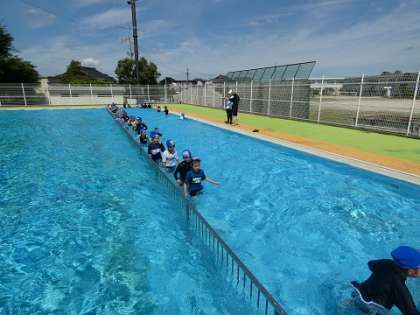暑い日は、水泳の授業が人気です。今年初めての水泳でとても楽しそうです。