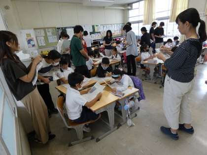 6月22日 3年1組 研究授業 公開日 2023/06/22 更新日 2023/06/22 お知らせ 国語の授業で研究授業が行われました。全校の先生が見に来たので、3年1組の子たちは緊張気味でして。授業の単元名は「調べて書こう、私のレポート」で、自分の書いたレポートをグループの子に見てもらい、よいところやさらに良くなりそうなところを言い合うという内容でした。 みんなしっかりレポートが書けていたし、しっかり読めて、意見できていたので感心しました。