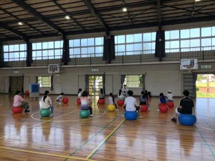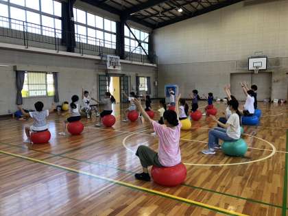 6月17日(土)畝部小学校地域共働本部のうねべ♪わくわく学校(バランスボールでエクササイズ)がたくさんの参加者を迎えて行われました。姿勢保持などに使われて大切だといわれているインナーマッスルが鍛えられそうです。
