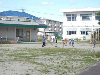 夏休み前に学級レクを計画しているクラスが熱中症対策の赤旗がでないうちにやろうと急いで運動場でドッジボールを始めました。最後にできてよかったですね。