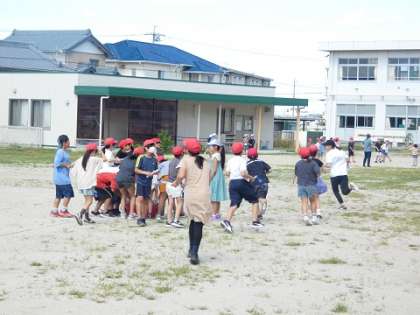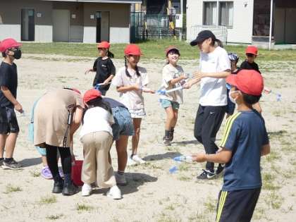 水と空気の実験で水鉄砲で水を飛ばしています。楽しそうです。