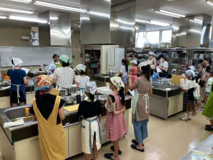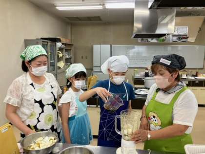 うねべ♪わくわく学校「野菜と果物でやきにくのたれづくり」 公開日 2023/09/07 更新日 2023/09/07 学校の特色ある活動 8月21日(月) うねべ♪わくわく学校「野菜と果物でやきにくのたれづくり」をメグリアうねべ店2F調理室にて開催しました。講師は、JAあいち豊田女性部上郷支部の皆様で地域の方が教えてくださいました。畝部の選果場からいただいた新鮮な梨で、地産地消のやきにくのたれが出来上がりました。