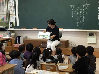 今朝は、ボランティアさんたちの読み聞かせがありました。楽しみにしている子がたくさんいます。