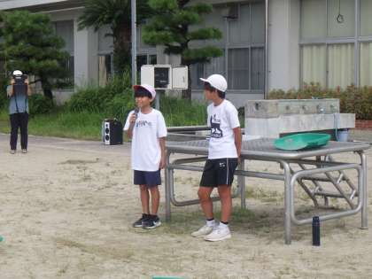 今日は、2組の子たちが、運動場の草取りをしてくれました。