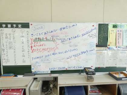 9月22日 運動会に向けて 公開日 2023/09/22 更新日 2023/09/22 お知らせ 10月21日の運動会に向けて1か月を切りました。56組さんでは、朝から元気に踊りの練習をしていました。3年1組では、目標や意気込みをまとめたものが掲示してありました。