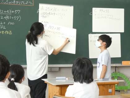 「計算の決まりを工夫して計算しよう。」というミッションをクリアーしようと真剣に考え、話し合いました。ipadもみんな上手に使いこなして、課題を受け取ったり、提出したり、他の子の考えと比較したりしていました。