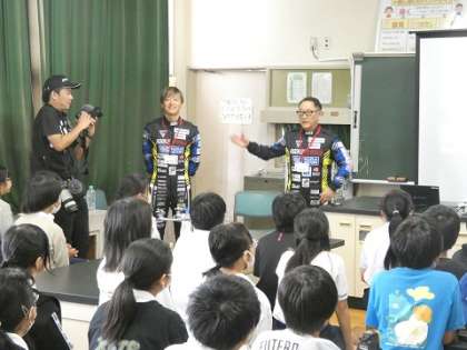 今回デモ走行する水素エンジンGRヤリスが水素エンジンを積んでいることや大人の責任としてカーボンニュートラルに取り組んで、子どもたちの世代に環境をつないでいくことなどが豊田章男会長から語られ、子どもたちは真剣にその話を聞きました。
