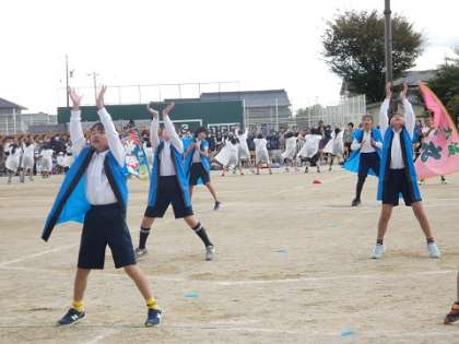 中学年部 公開日 2023/10/21 更新日 2023/10/21 学校行事 競遊「絆の綱引き 押してダメなら引いてみろ」では、迫力のある綱引きが行われました。 リレー「ココロ繋ぐ、全力リレー」では、全力の走りがかっこよかったです。 表現「全力を出し切れ!畝部っ子ソーラン}では、全力のかっこいいソーランを踊ることができました。