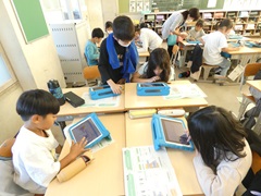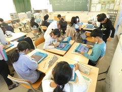 ICT支援員さんにスクラッチというアプリの使い方を教えてもらいました。スクラッチを使って、自分が描いた絵を動かして動画を作りました。