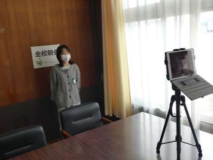 オンラインで全校朝会が行われました。校長先生からは、ものの見方や考え方はちがうから、自分と考えの違う人の話にも耳を傾けていこうというお話がありました。