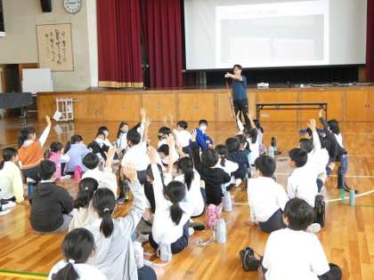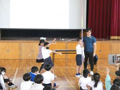 3年生 パラアスリート講習会 公開日 2023/11/06 更新日 2023/11/06 お知らせ パラアスリートの高橋峻也選手を講師にお招きして、パラアスリート講習会を行いました。やり投げのデモンストレーションやボッチャー体験をしました。子どもたちは、事前にパラオリンピックについて事前に調べ学習をしていたので興味を持って意欲的に講習会に参加することができました。