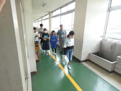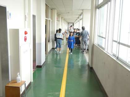 平均を求める学習をしました。廊下で自分の歩幅の平均を測ってみました。