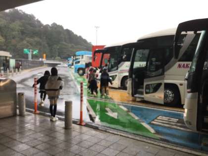 大津サービスエリアに着きました。雨です。バスからは濡れずにトイレに移動できました。