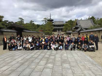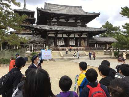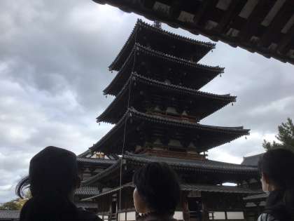 記念撮影の後、世界最古の木造建築の法隆寺を見学しました。