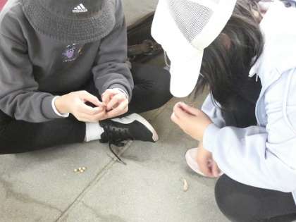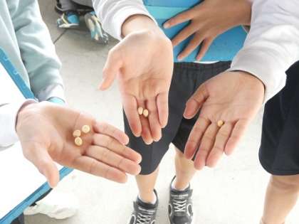 大豆を収穫して観察しました。