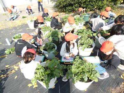 大根を育てて、観察しています。間引きして、さらに大きな大根を育てていきます。