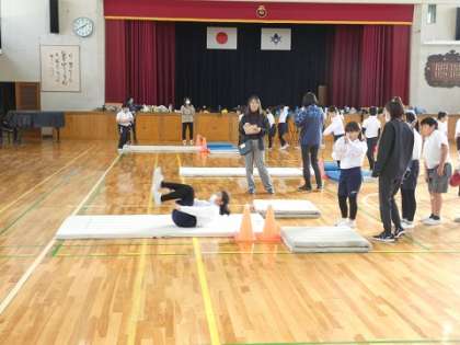 11月30日 4年1組 研究授業 公開日 2023/11/30 更新日 2023/11/30 お知らせ 体育の跳び箱の研究授業が行われました。今回の授業では、自分の動きをipadの動画で見て自分の課題を見つけ、グループの仲間のアドバイスを受けながら練習していくというものでした。子どもたちは1時間の授業の中でも練習方法を工夫して仲間と協力しながら楽しく練習し、上達していました。見に来ていた全校の先生たちも熱心に練習する4年生の姿に感心していました。