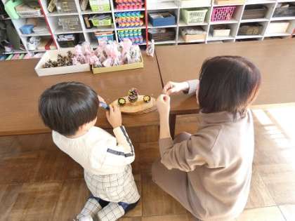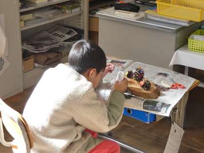 松ぼっくりを使って、かわいいクリスマス飾りを作りました。