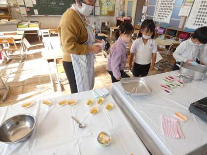 12月13日 5組、6組 スウィートポテト作り 公開日 2023/12/13 更新日 2023/12/13 お知らせ 先日、収穫したサツマイモでスウィートポテトを作りました。とてもおいしかったです。また、校長先生に12月21日のクリスマス会の招待状を送りました。クリスマス会には、マジシャンも来ると書いてありました。