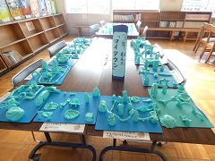 粘土で作った「マイタウン」の作品を見ると、細かい工夫がたくさんありました。今日は、友達の作品を鑑賞しました。