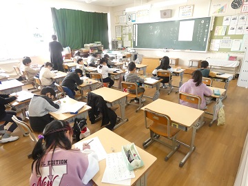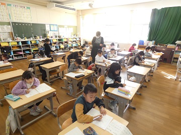1年生が書初めの練習をしていました。低学年は、硬筆です。丁寧に練習しました。