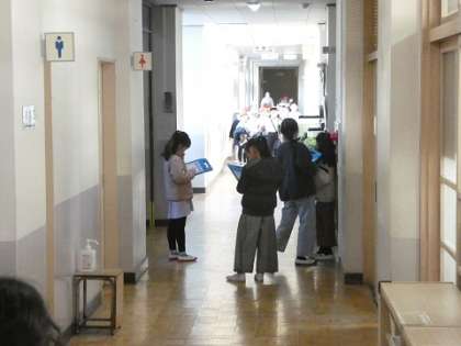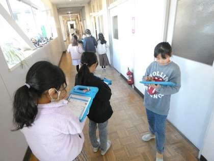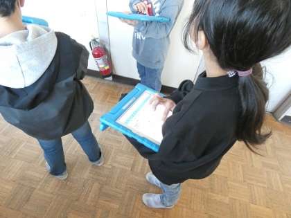 学校に設置されている消火器の場所をipadに送られてきた図面を見ながら確認して校内を回りました。