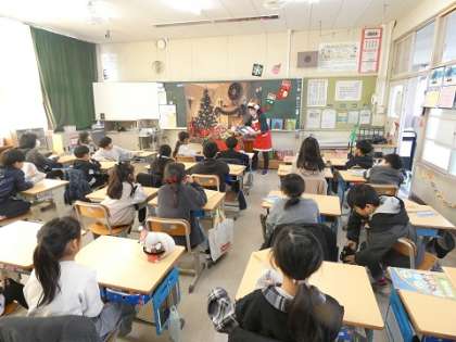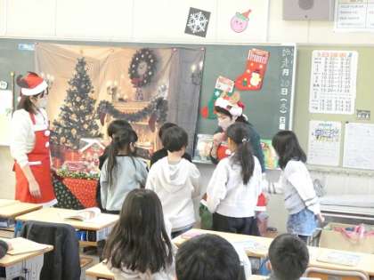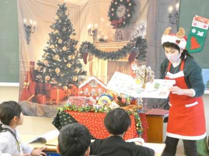 3年生 英語の授業 公開日 2023/12/19 更新日 2023/12/19 お知らせ 早いもので、今年も最後の週になりました。3年2組は、外国語活動の授業は、今年最後です。写真のようにクリスマスの雰囲気で、行われました。ヨーロッパのクリスマスの話を教えてくれたり、楽しくオーナメントを作ってクリスマスツリーに飾ったり、ビンゴゲームをしたりして楽しみました。