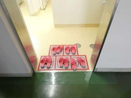 新しいトイレの使用の様子を見に行ったら、2年生の男子トイレのスリッパがきれいにそろっていました。