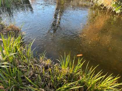 今年最後の授業日が、今年一番の寒さとなりました。畝部愛ランドの池にも氷がはりました。