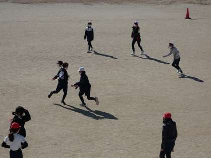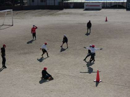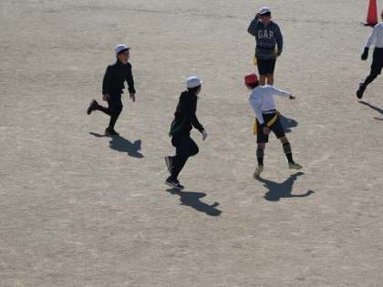 タグラグビーの練習をしています。戦術も工夫しながら、練習しました。
