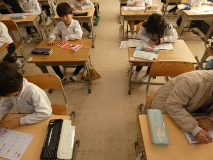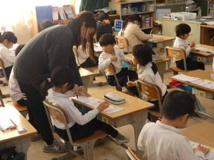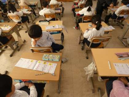 1年生が、漢字の練習をしていました。右、左、男、女という漢字を書いていました。1年生では80字の漢字を覚えます。しっかり練習しましょう。ちなみに2年生では160字、小学校では、1026字の漢字を練習します。