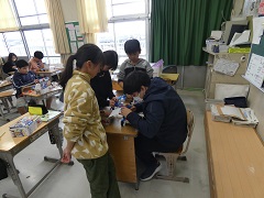 5年生 理科の授業 公開日 2024/02/15 更新日 2024/02/15 お知らせ 電気のモーターの車を作っています。試行錯誤を繰り返して頑張ったり、先生に少し助けてもらったりして完成を目指して頑張っていました。