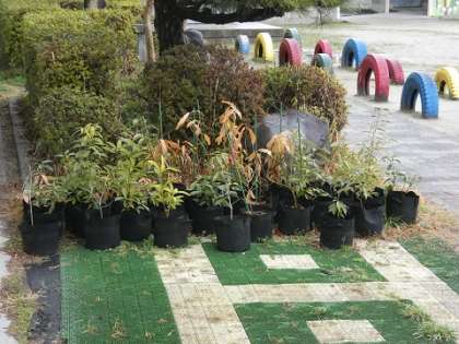 本日、予定していた6年生の新しくできる博物館でのどんぐりの苗の植樹は、3月8日の午前中に変更されました。写真の植樹する苗は、6年生が、どんぐりを拾ってきて発芽して、3年間育てた苗です。